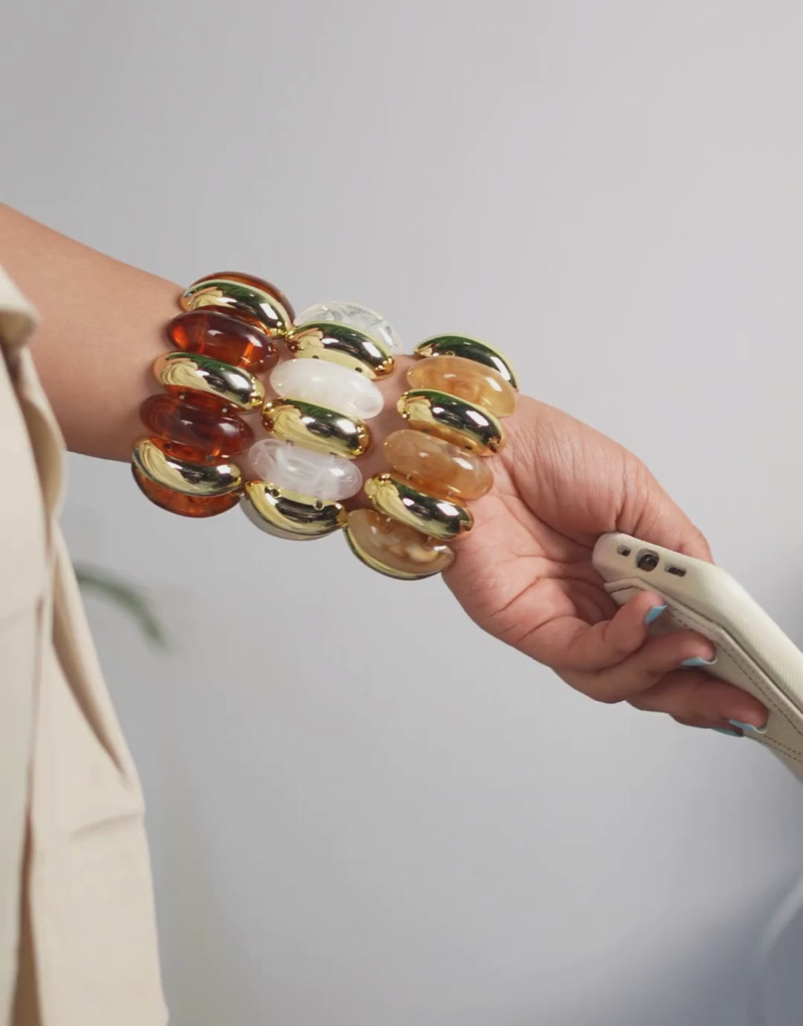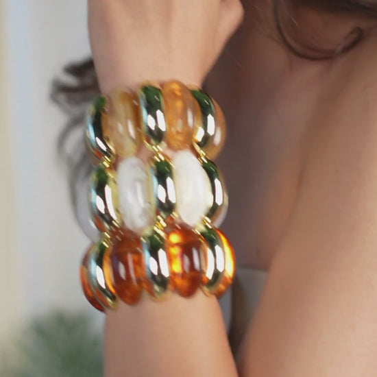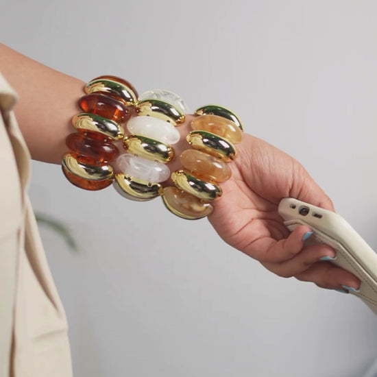 Nova Resin Bangle Stack (Amber/White/Brown)